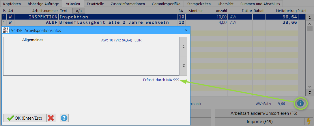 Dieses so genannte „Ersatzteil POPUP“ wurde jetzt so angepasst, dass es sich bereits öffnet, sobald das Ersatzteil im Auftrag eingegeben wird. Außerdem können beim Aufruf des Tab „Ersatzteile“ jetzt mehrere Informationen gleichzeitig dargestellt werden, falls in einem Auftrag mehrere Teile mit hinterlegten POPUP-Zusatzinformationen enthalten sind.